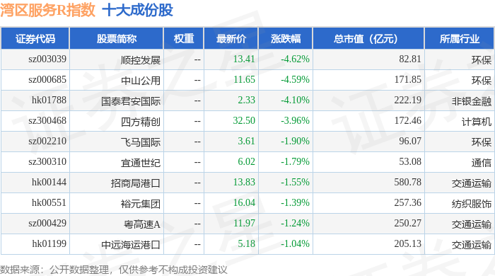 湾区服务R(480011)指数十大成份股详情如下: