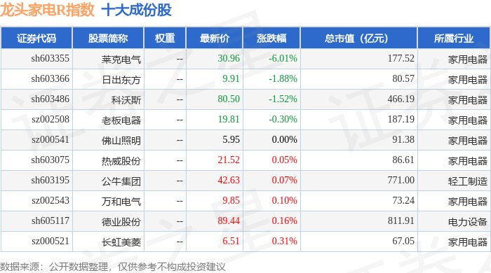 近10日内龙头家电R(480028)指数成份股做了调整,新纳入了3只股票,剔除了3只股票。