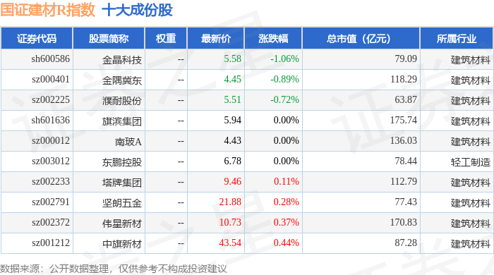 国证建材R(480048)指数十大成份股详情如下: