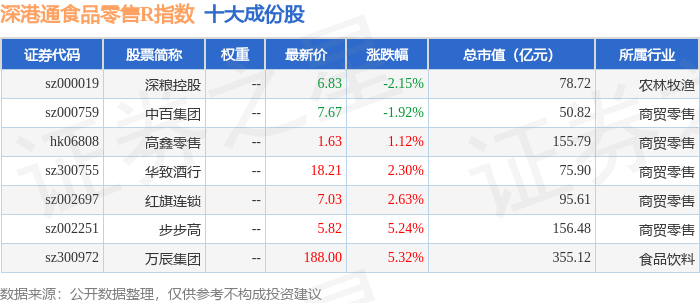 深港通食品零售R(483037)指数十大成份股详情如下: