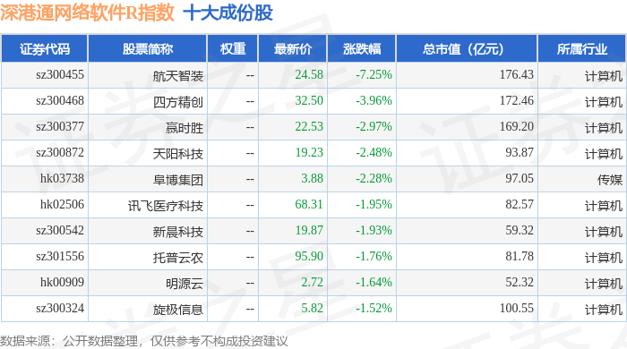 深港通网络软件R(483047)指数十大成份股详情如下:
