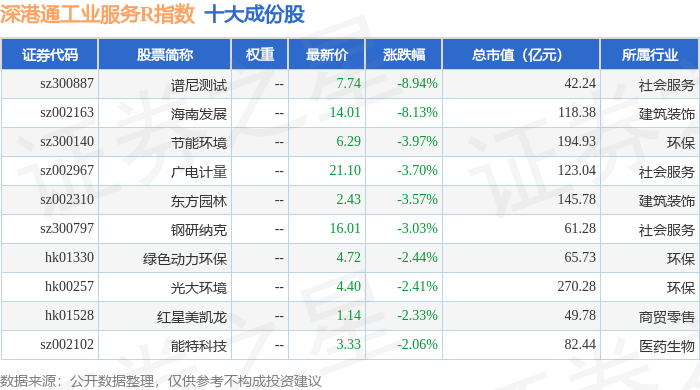 深港通工业服务R(483055)指数十大成份股详情如下: