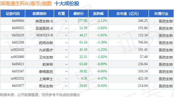 深港通生科R(港币)(483060)指数十大成份股详情如下: