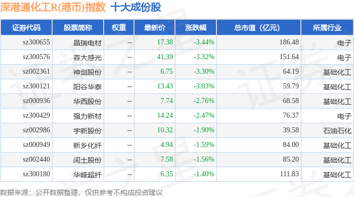 深港通化工R(港币)(483064)指数十大成份股详情如下: