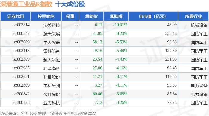 深港通工业品R(483069)指数十大成份股详情如下: