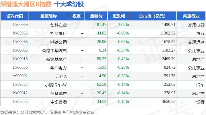 深港通大湾区R(483089)指数十大成份股详情如下: