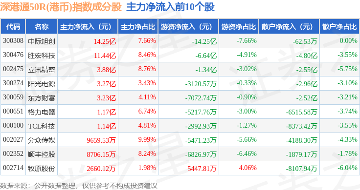 资金流向方面,深港通50R(港币)(483092)指数成份股当日主力资金净流入合计32.81亿元,游资资金净流出合计24.18亿元,散户资金净流出合计8.63亿元。成份股资金流向详情见下表: