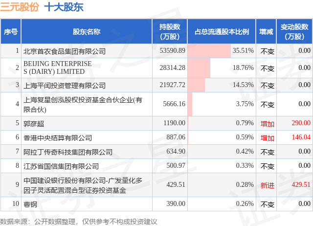 根据三元股份2025年三季报公布的十大股东详情如下: