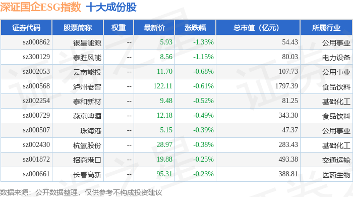深证国企ESG(970055)指数十大成份股详情如下: