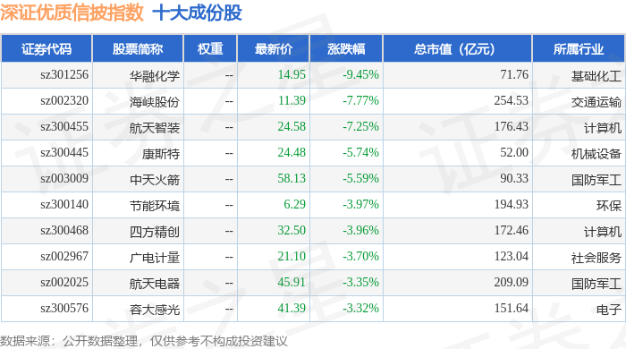 深证优质信披(970065)指数十大成份股详情如下: