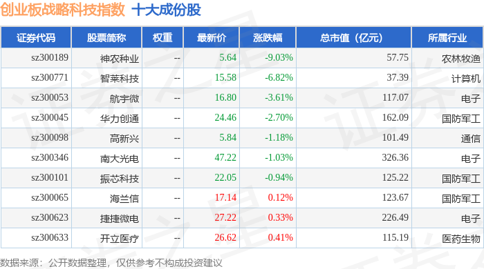 创业板战略科技(971004)指数十大成份股详情如下: