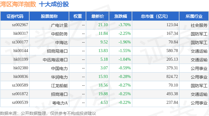 近10日内湾区海洋(980019)指数成份股做了调整,新纳入了2只股票。