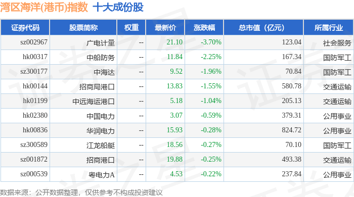 湾区海洋(港币)(980020)指数十大成份股详情如下: