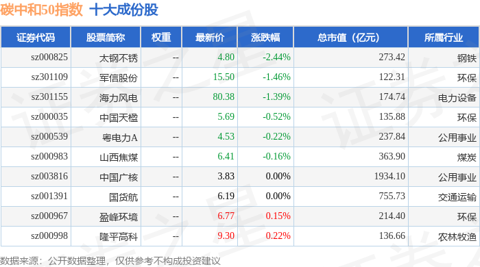 碳中和50(980021)指数十大成份股详情如下: