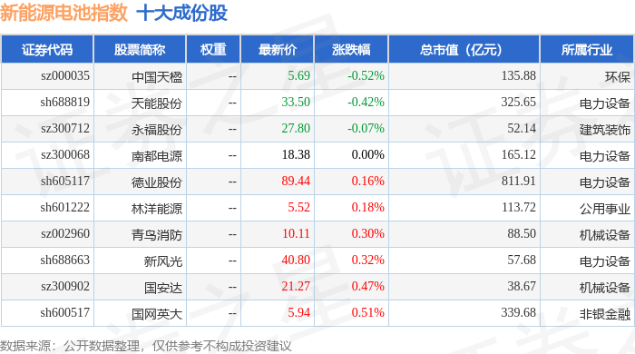 新能源电池(980027)指数十大成份股详情如下: