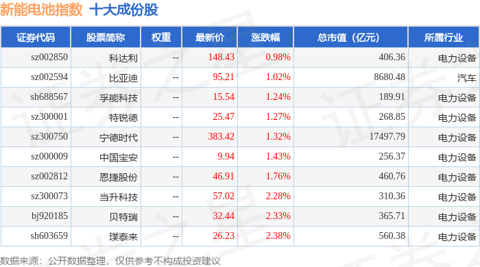 新能电池(980032)指数十大成份股详情如下: