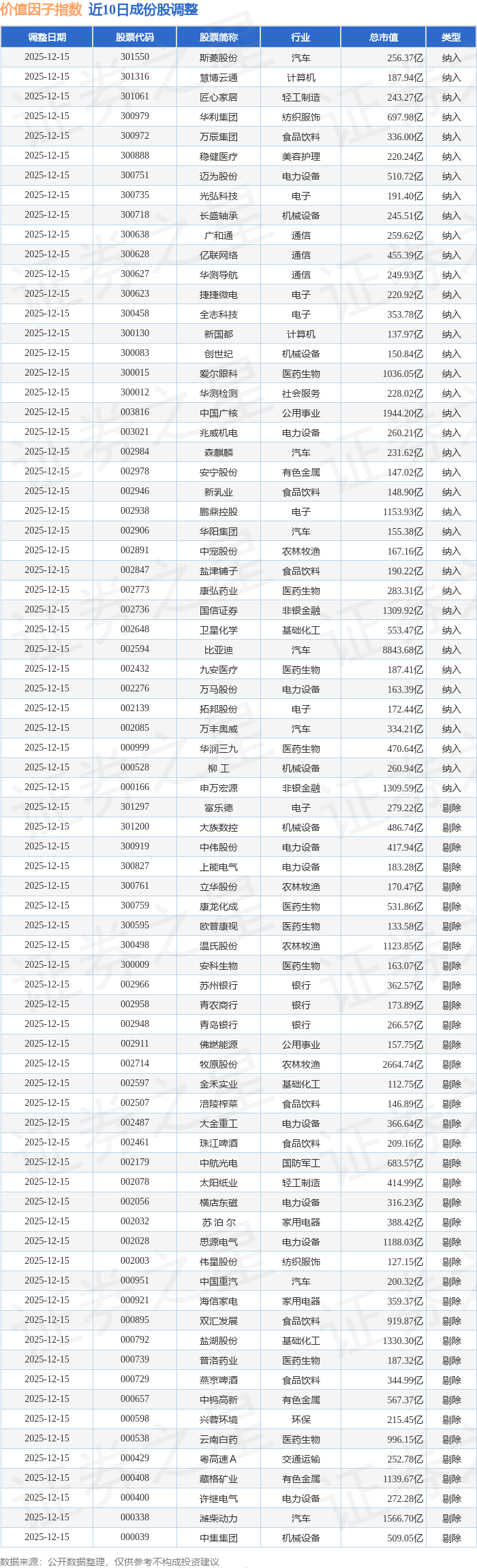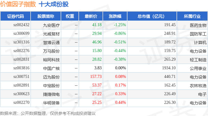 价值因子(980056)指数十大成份股详情如下: