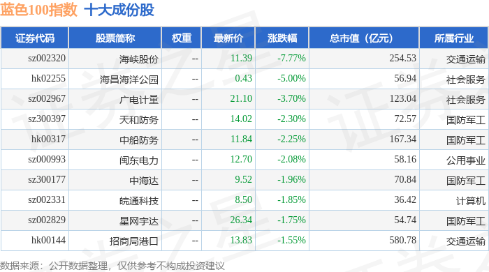 近10日内蓝色100(980068)指数成份股做了调整,新纳入了9只股票,剔除了2只股票。