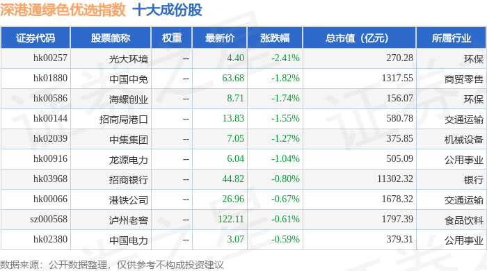 深港通绿色优选(983011)指数十大成份股详情如下: