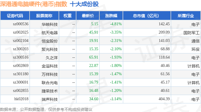 深港通电脑硬件(港币)(983044)指数十大成份股详情如下: