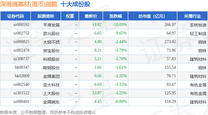 深港通基材(港币)(983062)指数十大成份股详情如下: