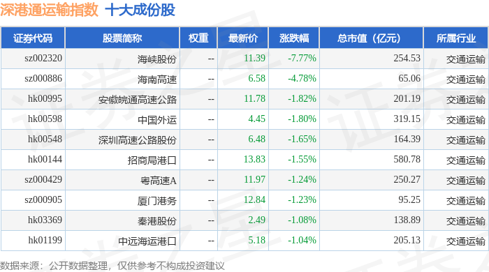 资金流向方面,深港通运输(983077)指数成份股当日主力资金净流出合计2.32亿元,游资资金净流出合计9117.91万元,散户资金净流入合计3.23亿元。成份股资金流向详情见下表: