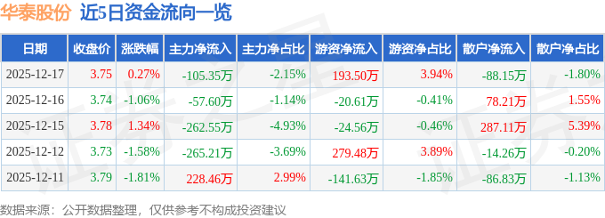 证券之星消息,截至2025年12月17日收盘,华泰股份(600308)报收于3.75元,上涨0.27%,换手率0.87%,成交量13.19万手,成交额4910.09万元。