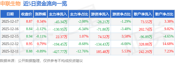 证券之星消息,截至2025年12月17日收盘,申联生物(688098)报收于8.87元,上涨0.34%,换手率0.6%,成交量2.48万手,成交额2179.17万元。