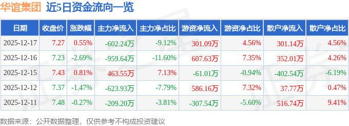 证券之星消息,截至2025年12月17日收盘,华谊集团(600623)报收于7.27元,上涨0.55%,换手率0.49%,成交量9.11万手,成交额6602.72万元。