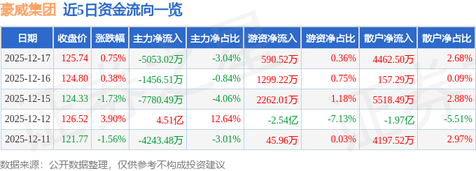 12月17日的资金流向数据方面,主力资金净流出5053.02万元,占总成交额3.04%,游资资金净流入590.52万元,占总成交额0.36%,散户资金净流入4462.5万元,占总成交额2.68%。
