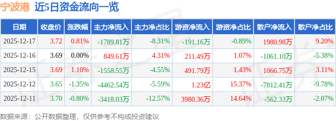 证券之星消息,截至2025年12月17日收盘,宁波港(601018)报收于3.72元,上涨0.81%,换手率0.3%,成交量58.01万手,成交额2.15亿元。