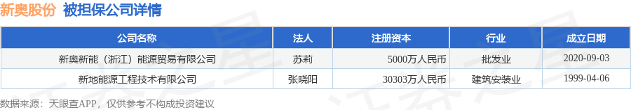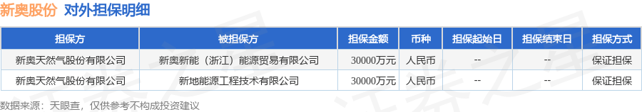 新奥股份12月16日披露2笔对外担保,被担保公司2家。对外担保明细如下表: