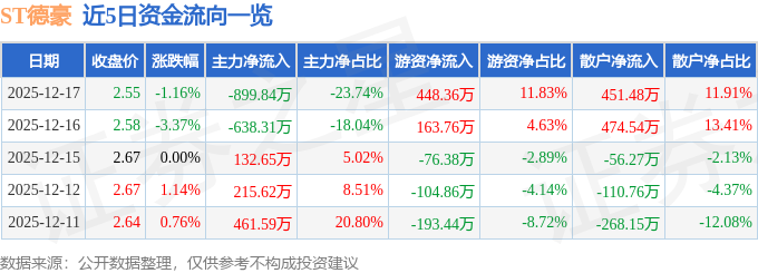 12月17日的资金流向数据方面,主力资金净流出899.84万元,占总成交额23.74%,游资资金净流入448.36万元,占总成交额11.83%,散户资金净流入451.48万元,占总成交额11.91%。