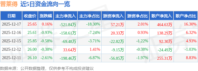 12月17日的资金流向数据方面,主力资金净流出521.84万元,占总成交额18.3%,游资资金净流入57.21万元,占总成交额2.01%,散户资金净流入464.63万元,占总成交额16.3%。