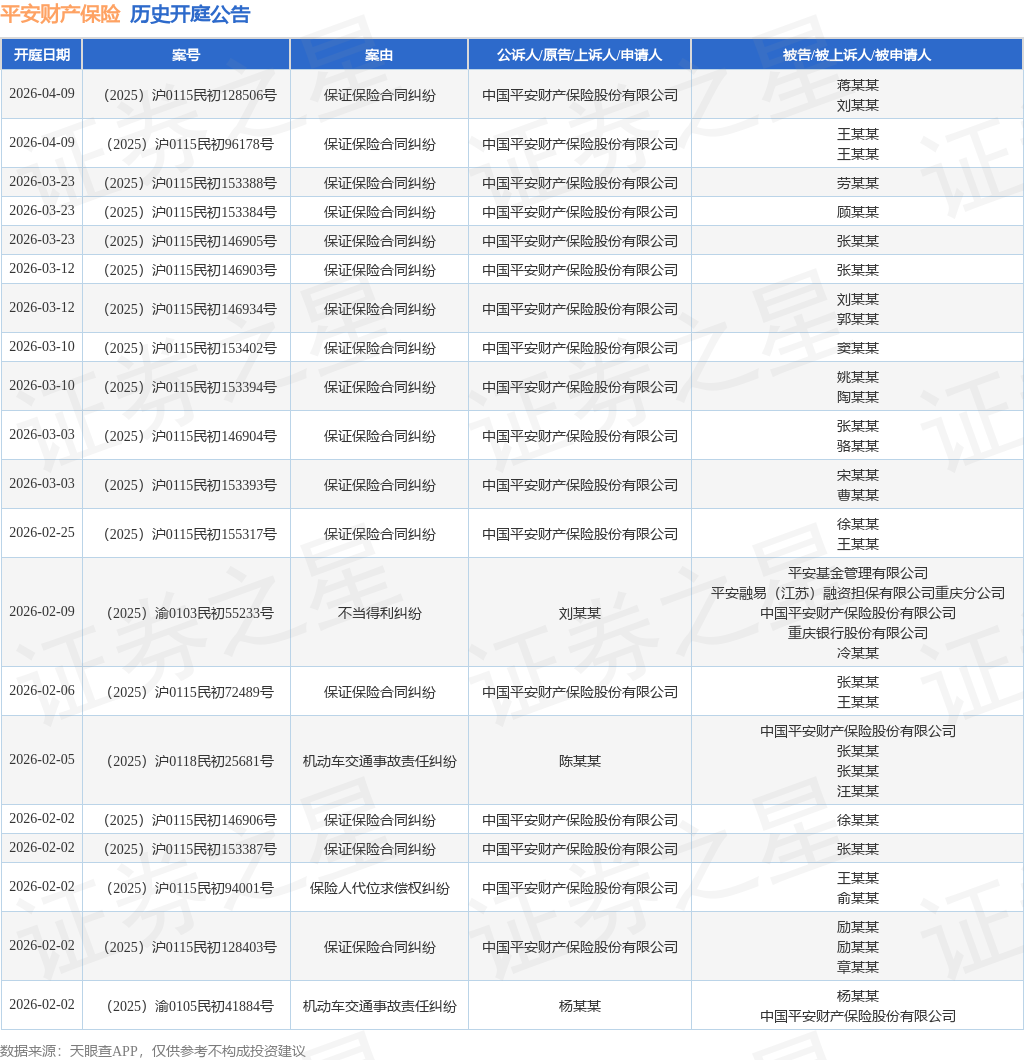 证券之星消息,根据天眼查APP显示,近日公布了一则中国平安财产保险股份有限公司作为被告/被上诉人的开庭公告,详细内容如下: