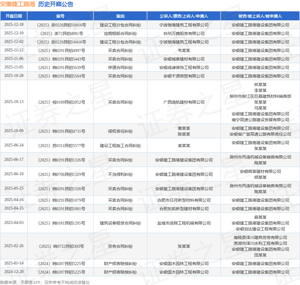 证券之星消息,根据天眼查APP显示,近日公布了一则安徽建工路港建设集团有限公司作为被告/被上诉人的开庭公告,详细内容如下: