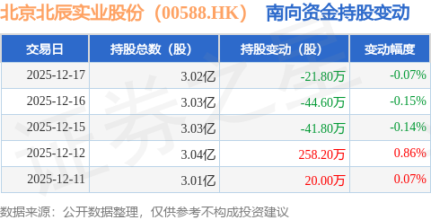 证券之星消息,12月17日南向资金减持21.8万股北京北辰实业股份(00588.HK)。近5个交易日中,获南向资金增持的有2天,累计净增持170.0万股。近20个交易日中,获南向资金增持的有13天,累计净增持1119.8万股。截至目前,南向资金持有北京北辰实业股份(00588.HK)3.02亿股,占公司已发行普通股的42.77%。