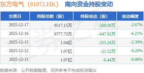 证券之星消息,12月17日南向资金减持260.58万股东方电气(01072.HK)。近5个交易日中,获南向资金减持的有5天,累计净减持1191.7万股。近20个交易日中,获南向资金减持的有13天,累计净减持1416.72万股。截至目前,南向资金持有东方电气(01072.HK)9517.15万股,占公司已发行普通股的23.32%。