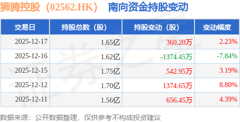 证券之星消息,12月17日南向资金增持360.2万股狮腾控股(02562.HK)。近5个交易日中,获南向资金增持的有4天,累计净增持1559.8万股。近20个交易日中,获南向资金增持的有15天,累计净增持7892.55万股。截至目前,南向资金持有狮腾控股(02562.HK)1.65亿股,占公司已发行普通股的36.06%。