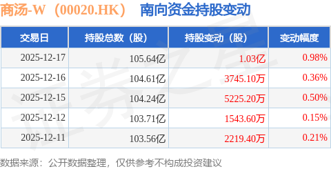 证券之星消息,12月17日南向资金增持1.03亿股商汤-W(00020.HK)。近5个交易日中,获南向资金增持的有5天,累计净增持2.3亿股。近20个交易日中,获南向资金增持的有13天,累计净增持4.14亿股。截至目前,南向资金持有商汤-W(00020.HK)105.64亿股,占公司已发行普通股的27.3%。