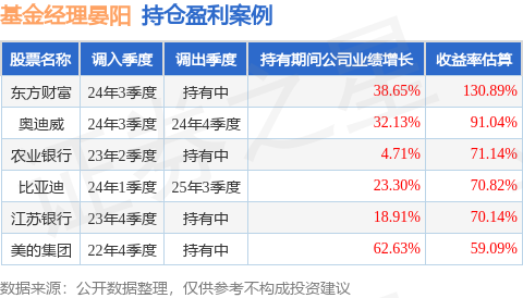 晏阳管理的汇添富中证金融地产ETF基金在24年3季度买入东方财富,已连续持有1年又1个季度。持有期间的估算收益率为130.89%,持有期间东方财富在2024年到2025年的中报营业总收入增幅达38.65%。