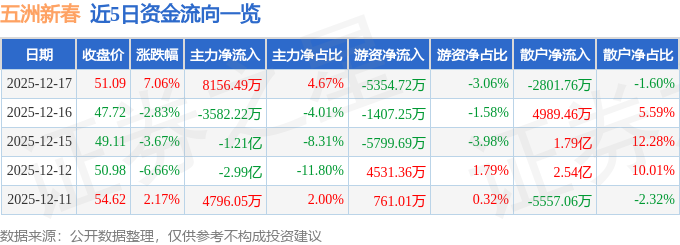证券之星消息,截至2025年12月17日收盘,五洲新春(603667)报收于51.09元,上涨7.06%,换手率9.48%,成交量34.72万手,成交额17.48亿元。