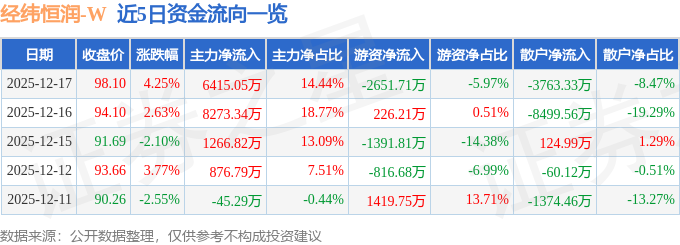 证券之星消息,截至2025年12月17日收盘,经纬恒润(688326)报收于98.1元,上涨4.25%,换手率4.07%,成交量4.54万手,成交额4.44亿元。