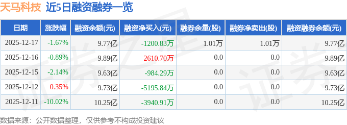 证券之星消息,截至2025年12月17日收盘,天马科技(603668)报收于16.5元,下跌1.67%,换手率4.26%,成交量21.53万手,成交额3.54亿元。