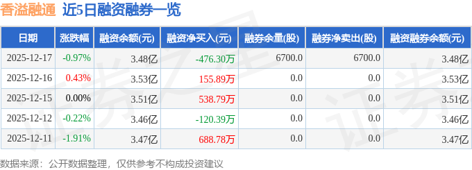 香溢融通融资融券信息显示,融资方面,当日融资买入892.17万元,融资偿还1368.46万元,融资净偿还476.3万元。融券方面,融券卖出6700.0股,融券偿还0.0股,融券余量6700.0股,融券余额6.15万元。融资融券余额3.48亿元。