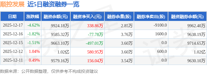 顺控发展融资融券信息显示,融资方面,当日融资买入1371.87万元,融资偿还1033.01万元,融资净买入338.86万元。融券方面,融券卖出1600.0股,融券偿还1.07万股,融券余量2.85万股,融券余额38.22万元。融资融券余额9962.4万元。