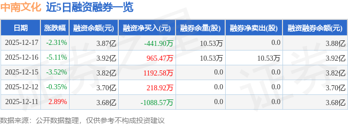 证券之星消息,截至2025年12月17日收盘,中南文化(002445)报收于2.54元,下跌2.31%,换手率5.42%,成交量128.33万手,成交额3.23亿元。
