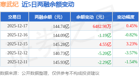 证券之星消息,12月17日,寒武纪(688256)融资买入11.15亿元,融资偿还10.53亿元,融资净买入6173.43万元,融资余额144.4亿元,当日融资净买入排名第50。