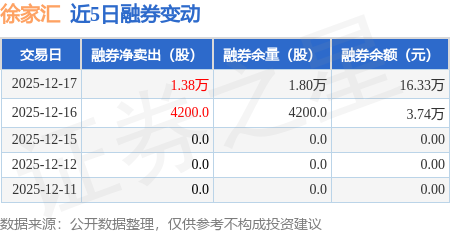 证券之星消息,12月17日,徐家汇(002561)融资买入3358.64万元,融资偿还1848.58万元,融资净买入1510.06万元,融资余额1.29亿元,近20个交易日中有11个交易日出现融资净买入。