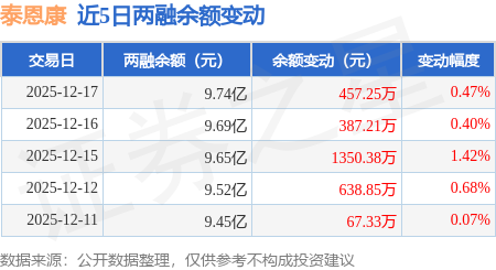 证券之星消息,12月17日,泰恩康(301263)融资买入1534.29万元,融资偿还1082.17万元,融资净买入452.12万元,融资余额9.74亿元,近3个交易日已连续净买入累计2189.78万元。
